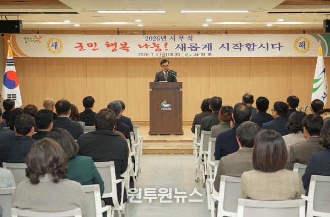 (원투원뉴스) 서천군은 지난 2일 군청 대회의실에서 2026년 시무식을 개최하여 병오년(丙午年) 새해 군정 운영의 시작을 알렸다.