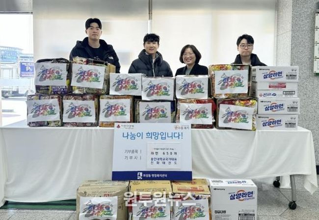 (원투원뉴스) 수원시 장안구 파장동은 지난 31일 용인대 국가대표 신화태권도로부터 라면 650개를 전달받았다고 밝혔다.