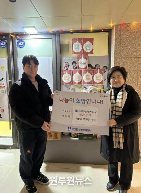 (원투원뉴스) 지난 31일, 수원시 권선구 곡선동 경희대미션태권도장이 지역 내 취약계층을 돕기 위해 아이들이 함께 모은 라면 100개를 후원하며 따뜻한 나눔을 실천했다.