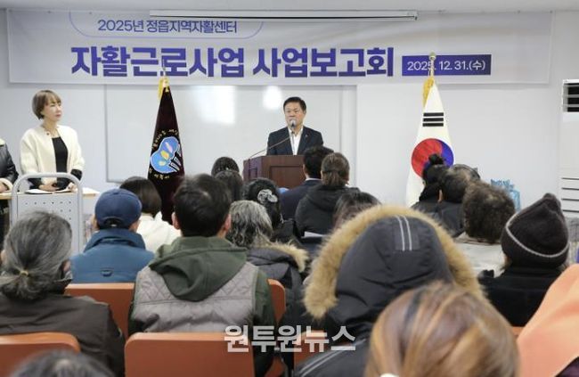 (원투원뉴스) 정읍지역자활센터가 지난 12월 31일 센터 2층 교육장에서 ‘2025년 사업보고회’를 갖고, 보건복지부 평가 6년 연속 우수기관 선정 등 한 해 동안 일궈낸 굵직한 성과들을 공유하며 2025년을 마무리했다.