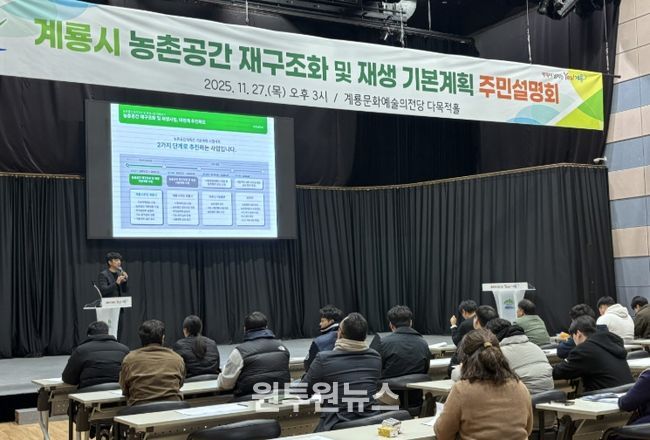 (원투원뉴스) 계룡시는 6일 오후 3시 시청 대회의실에서 ‘농촌공간 재구조화 및 재생 기본계획’ 수립을 위한 주민공청회를 개최한다고 밝혔다.