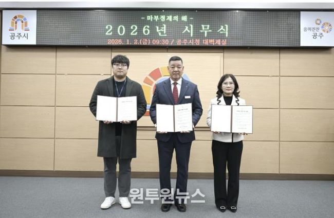 (원투원뉴스) 공주시는 2일 시청 대백제실에서 열린 시무식에서 시장을 비롯한 공직자 대표가 ‘2026년 공직자 청렴 다짐 선언문’을 함께 낭독하며 청렴 실천 의지를 다졌다고 밝혔다.