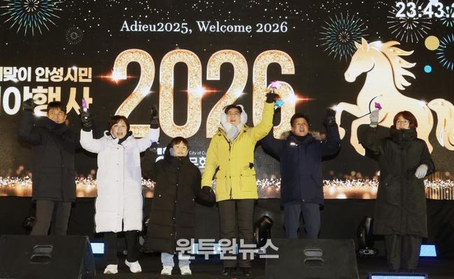 (원투원뉴스) 안성시가 후원하고 안성문화원이 주관한 '2026년 새해맞이 안성시민 제야행사'가 12월 31일 밤 안성맞춤아트홀 야외무대에서 시민들의 큰 호응 속에 안전하고 차분하게 마무리됐다.