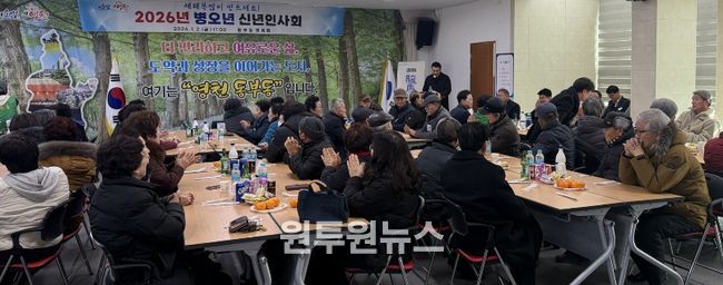 (원투원뉴스) 영천시 동부동체육회는 2일 동 행정복지센터 2층 회의실에서 기관단체장과 지역 원로 등 60여 명이 참석한 가운데 ‘2026년 병오년 신년인사회’를 개최하고, 새해 덕담을 나누며 동민 화합을 다졌다.