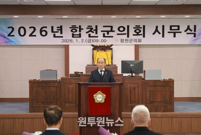 (원투원뉴스) 합천군의회는 지난 2일, 2026년 시무식을 개최하고 병오년(丙午年) 의정의 시작을 알리며, 군민과 소통하는 의정활동을 통해 지방의정과 군정의 동반성장을 이끌어 가겠다는 의지를 밝혔다.