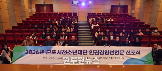 (원투원뉴스) 군포시청소년재단은 2026년 1월 2일, 군포시청소년수련관 4층 청소년어울림 극장에서 전 직원 대상 인권경영 선언문 선포식을 개최했다. 이번 행사는 재단 임직원 모두가 참여하여, 새해를 맞아 조직 내 인권경영 실천 의지를 공유하고 상호 존중과 인권 존중의 문화를 강화하기 위해 마련됐다.