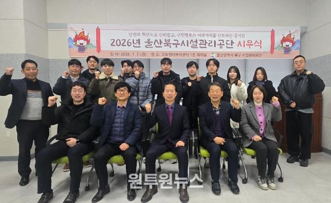 (원투원뉴스) 울산광역시 북구 시설관리공단은 2일 공단 본부 1층 회의실에서 2026년도 시무식 및 인권경영헌장 선포식을 개최하고, 새해 공단의 경영 방향과 핵심 가치에 대한 전사적 공감대를 형성했다.