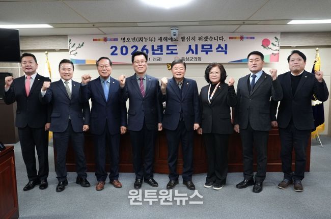 (원투원뉴스) 음성군의회는 1월 2일 의회 소회의실에서 의원 및 의회사무과 직원들이 참석한 가운데 2026년 시무식을 개최하고 새해 의정활동의 힘찬 출발을 알렸다.