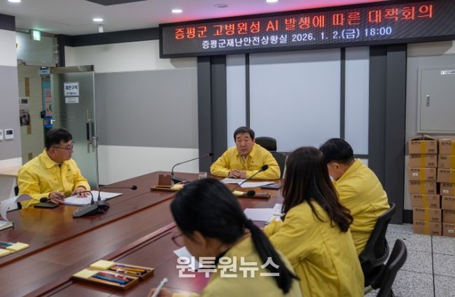 (원투원뉴스) 충북 증평군이 지역 내 농가에서 고병원성 조류인플루엔자(AI)가 발생함에 따라 긴급회의를 열고 방역 대응 강화에 나섰다.