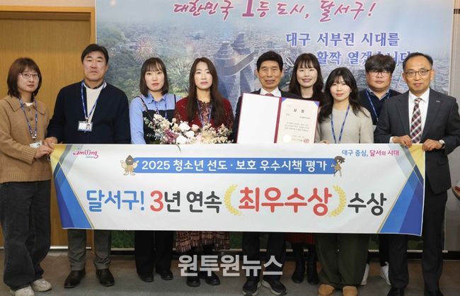 (원투원뉴스) 대구 달서구는 '2025년도 대구시 청소년 선도·보호 우수시책 구·군 평가'에서 3년 연속 최우수 기관으로 선정됐다.