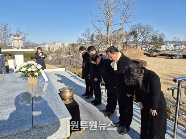 2026년 첫 공식일정으로 안동시 충혼탑을 찾은 직원들은 순국선열 및 호국영령의 숭고한 희생정신과 넋을 기리는 신년 참배를 실시했다.