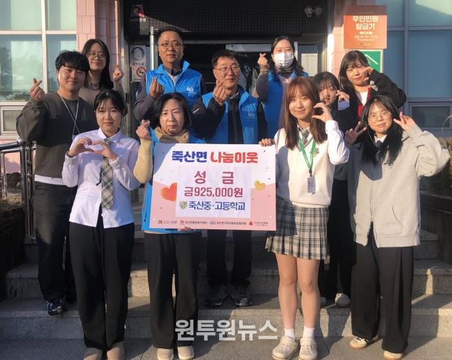 (원투원뉴스) 죽산중·고등학교는 지난 2일 2025학년도 동아리박람회 수익금 전액인 925,000원을 죽산면 저소득층을 위해 죽산면지역사회보장협의체에 기탁했다.