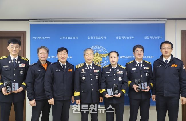 (원투원뉴스) 계양소방서(서장 송태철)는 6일 서장 집무실에서 30년 이상 장기근속한 소방공무원 3명에게 공로패를 수여했다고 밝혔다.