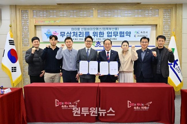 (원투원뉴스) 속초시가 1월 6일 속초시청 상황실에서 ㈜천일에너지와 ‘임목폐기물 재활용 무상처리’ 업무협약을 체결하고, 관내에서 발생하는 임목폐기물을 친환경 재생에너지로 전환하는 데 협력하기로 했다.