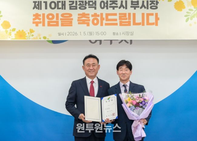 (원투원뉴스) 제10대 김광덕 여주시 부시장이 지난 1월 5일 자로 공식 취임하며 본격적인 업무에 들어갔다. 경기도에서 지역금융과장과 교통국장을 역임한 김 부시장은 별도의 취임식 대신 현장 방문과 유관 기관 소통을 택하며 실무형 부시장으로서의 면모를 보였다.