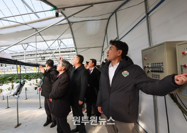이날 현장에는 김진태 강원특별자치도지사를 비롯해 한기호 국회의원(춘천철원화천양구을), 딸기 등 시설원예 재배 농업인들이 함께했으며, 시설 보온 상태와 작물 생육 상황 등을 점검했다.