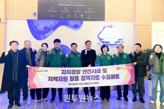 (원투원뉴스) 울산광역시의회 행정자치위원회는 올해 첫 정책현장활동으로 생활안전, 교통, 여성 청소년 등 지역밀착형 치안서비스를 제공하는 자치경찰제의 선진 운영사례와 지역특화자원을 활용하여 산업화한 성공사례를 비교시찰하고 지역 현안을 점검하기 위하여 1월6일부터 이틀간 제주특별자치도를 방문하고 8일 오전 귀울한다.