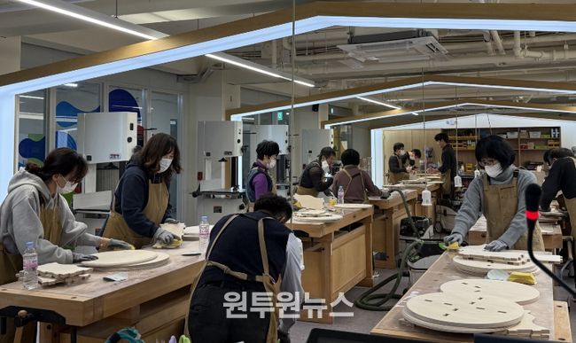 (원투원뉴스) 경상북도교육청 남부메이커교육센터(센터장 허영선)는 1월 7일부터 1월 9일까지 관리자 메이커 맛보기 원데이 클래스를 운영했다. 경상북도 남부권역 관내 관리자 약 120명을 대상으로 한 이번 메이커 프로그램은 ‘가죽공예, 목공’의 2개 과정이며 일별로 5시간으로 나누어 다양한 프로그램을 체험할 수 있는 기회를 제공하려 했다.