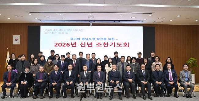 (원투원뉴스) 충남도청기독교직장선교회는 병오년(丙午年) 새해를 맞아 8일 도청 대회의실에서 신년 조찬 기도회를 열고, 국가와 충남의 도정·교육·치안을 위해 한마음 한뜻으로 기원했다.