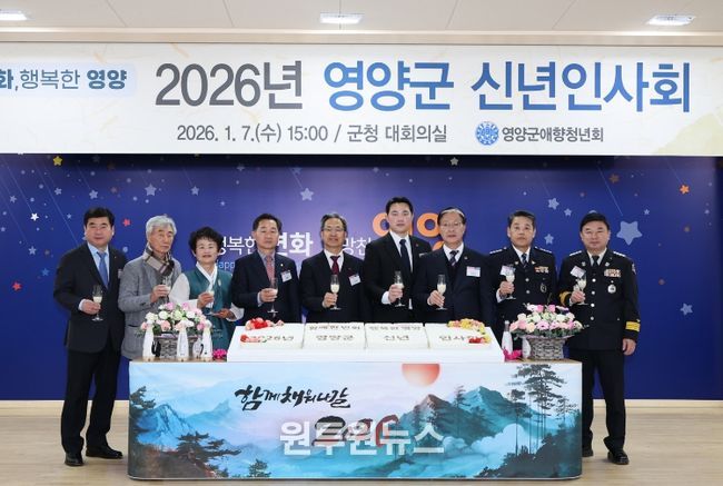 (원투원뉴스) 영양군과 영양군 애향청년회(회장 성문기)는 2026년 1월 7일 영양군청 대회의실에서 관내 기관단체 등 100여명이 참석한 가운데'2026년 영양군 신년인사회'를 개최했다고 밝혔다.