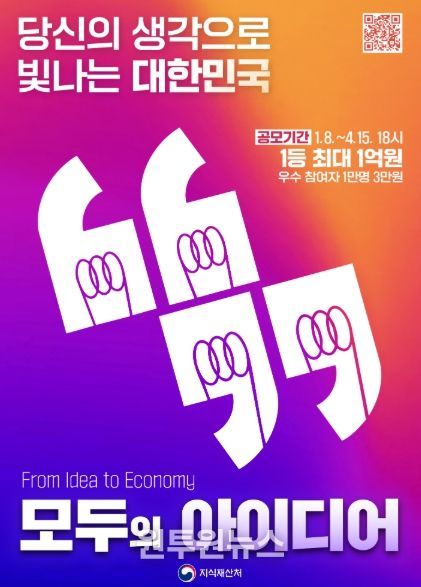 지식재산처(처장 김용선)는 관계부처와 협력을 통해 사회 곳곳에 있는 국민의 창의적 아이디어를 대대적으로 발굴・고도화하여, 그 결과물을 실제 사업과 정책으로 연결하는 범국가 국민 참여 프로젝트인 「모두의 아이디어」를 1월 8일부터 본격 시작한다.
