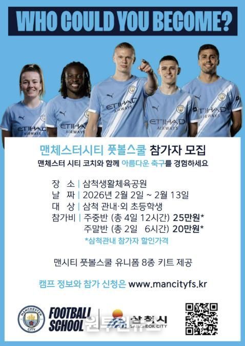 (원투원뉴스) 삼척시는 ‘맨체스터 시티 풋볼 스쿨(MCFS)’ 겨울 캠프를 운영한다.