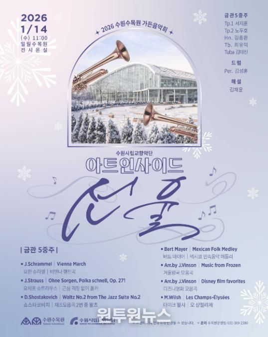 (원투원뉴스) 수원특례시는 1월 14일 일월수목원 전시온실에서 수원시립교향악단 아트인사이드 ‘선율’을 개최한다.