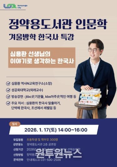 (원투원뉴스) 남양주시는 오는 17일 오후 2시 정약용도서관 2층 공연장에서 겨울방학 인문학 특강 ‘이야기로 생각하는 한국사’를 개최한다.