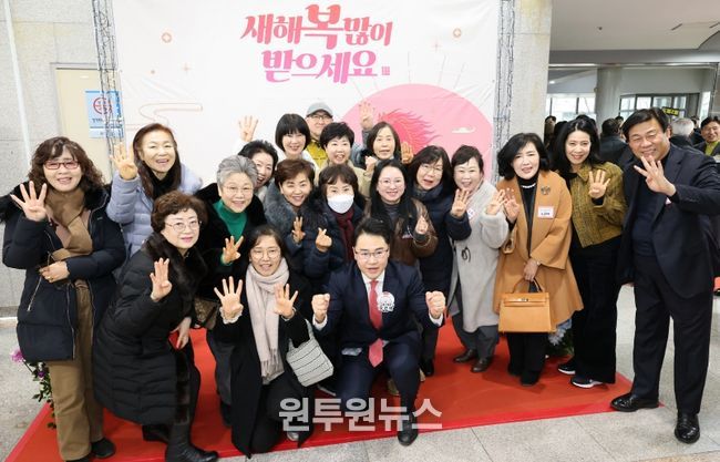 (원투원뉴스) 서울 도봉구가 9일 오후 도봉구청 2층 선인봉홀에서 신년인사회를 개최했다. 이날 행사에는 오세훈 서울시장, 지역 국회의원, 시·구의원, 관계 기관장, 직능단체장, 구민 등 1,000여 명이 참석했다.