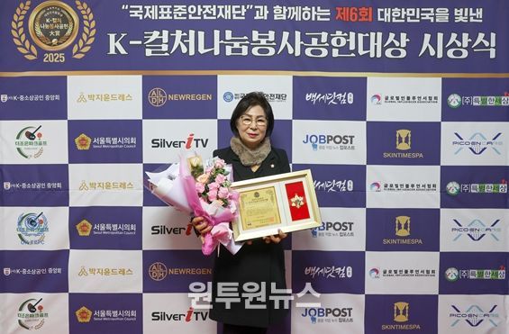 (원투원뉴스) 성동구의회 남연희 의장이 지난 12월 10일 서울 강서구 스카이아트홀에서 열린 ‘제6회 K-컬처나눔봉사공헌대상’ 시상식에서 의정활동 나눔봉사공헌대상을 수상했다고 밝혔다.