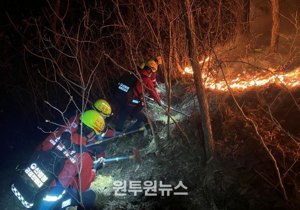 산불은 옥산동에서 1월 9일 새벽 5시 2분에 신고 접수돼 약 40분만인 5시 43분에 진화가 완료됐다.