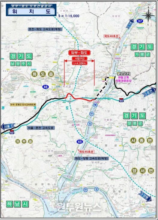 (원투원뉴스) 국가지원지방도 86호선 와부~화도 4.3㎞ 구간이 5년 8개월 동안의 공사를 마치고 13일 전격 개통된다.