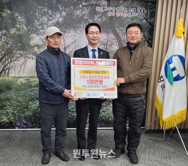 (원투원뉴스) 고창노점상인회가 지난 9일 고창군청을 방문해 지역 내 어려운 이웃을 돕기 위한 성금 100만원을 기탁했다.