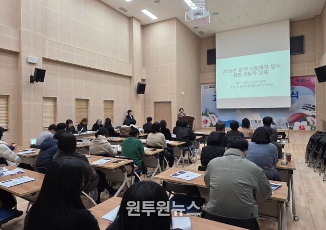(원투원뉴스) 고창군이 지난 9일 고창군보훈회관 1층 다목적실에서 읍·면 사회복지 업무 담당자 30여 명을 대상으로 2026년 사회복지사업 추진방향 교육과 공유의 시간을 가졌다.