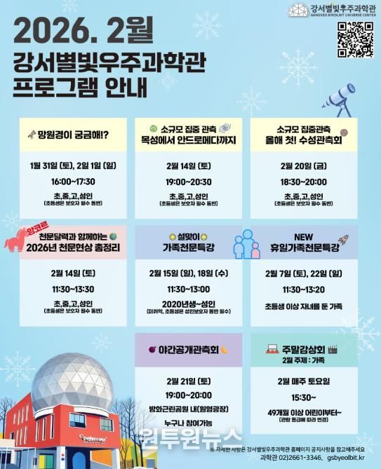 프로그램은 1월 15일부터 선착순 모집하며 조기 마감될 수 있다. 예약은 강서별빛우주과학관 누리집에서 하면 된다.