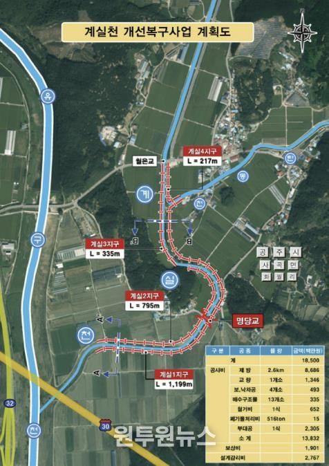 (원투원뉴스) 공주시는 지난해 집중호우로 큰 피해가 발생한 사곡면 화월리 계실천 일원에 총사업비 185억 원을 투입해 ‘계실천 개선복구사업’을 본격 추진한다고 12일 밝혔다.