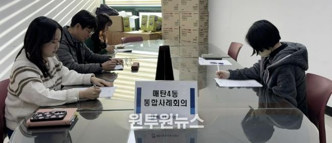 (원투원뉴스) 수원시 영통구 매탄4동 행정복지센터는 지난 9일, 취약계층의 복지 문제 해결과 체계적인 지원 강화를 위해 내부 사례회의를 개최했다.