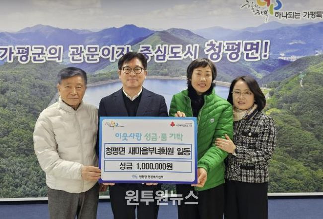 (원투원뉴스) 가평군 청평면 새마을부녀회는 최근 청평면 행정복지센터를 방문해 지역 내 어려운 이웃을 돕기 위한 성금 100만 원을 기탁했다.