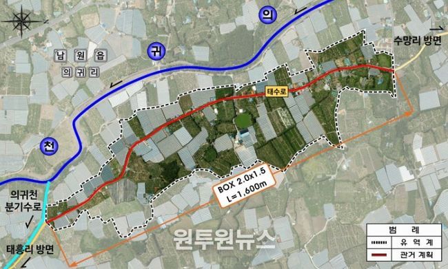 특히, 의귀1 재해위험개선지구 정비사업은 집중호우시 우수가 의귀천으로 유입되지 못해 태수로 주변 주거지와 농경지 저지대의 침수피해가 빈번하게 발생하는 곳으로 2028년까지 준공을 목표로 하고 있으며, 사업완료 시 263ha의 침수위험지역이 해소될 전망이다.