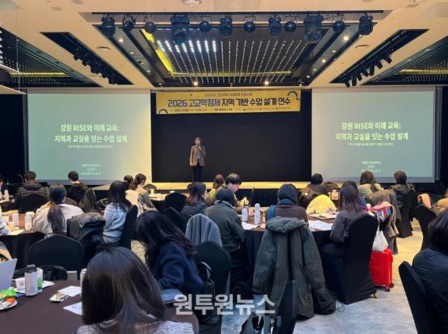 (원투원뉴스) 강원특별자치도교육청은 가톨릭관동대학교와 협력해 고교학점제 전면 도입과 2022 개정 교육과정의 안정적인 현장 안착을 지원하기 위한‘2026 고교학점제 지역 기반 수업 설계 연수’를 오는 2026년 1월 12일부터 13일까지 이틀간 강릉 세인트존스 호텔에서 운영한다고 밝혔다.