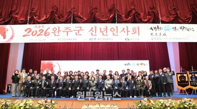 (원투원뉴스) 2026년 완주군 신년인사회가 12일 완주문화체육센터에서 완주청년회의소(JCI) 주관으로 열렸다.