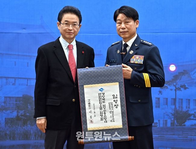 (원투원뉴스) 경상북도는 12일 도청 화백당에서 이철우 경상북도지사, 의용소방대 연합회장 등 150여 명이 참석한 가운데 ‘경상북도 신임 의용소방대장 임명장 수여식’을 개최했다.