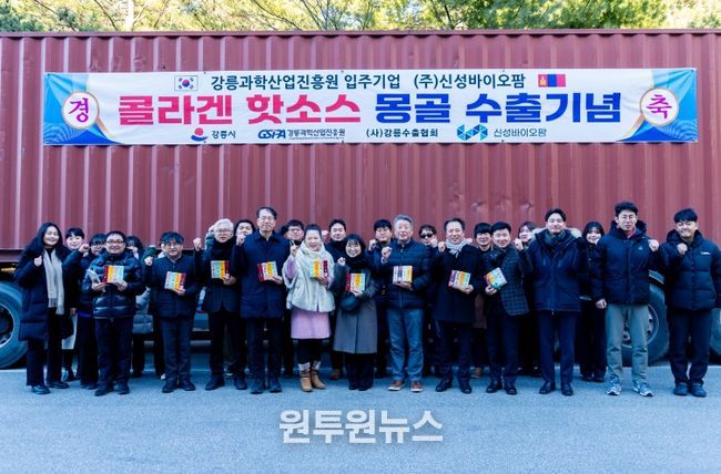 송미라 신성바이오팜 대표는“연어 껍질을 활용해 콜라겐을 생산하고 이를 화장품과 식품으로 확장하는 과정에서 강릉과학산업진흥원의 지원이 큰 도움이 됐다”며,“또한 강릉시 해외 시장개척단을 통해 제품을 해외에 소개한 것이 이번 대량 수출로 이어진 것이라고 생각한다”고 말했다. 이어 “이번 수출은 단발성 거래가 아니라, 강릉시와 강릉과학산업진흥원이 단계적으로 지원해 준 해외 시장개척 사업이 실제 성과로 이어진 결과”라며,“몽골을 거점 시장으로 CIS 지역까지 콜라겐 핫소스를 비롯한 강릉의 기능성 식품이 현지 유통망에 안정적으로 안착할 수 있도록 수출을 지속 확대해 나가겠다”고 덧붙였다.