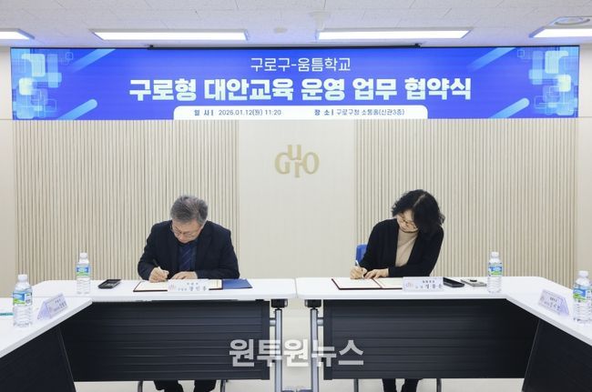 (원투원뉴스) 구로구가 1월 12일 구청 소통홀에서 움틈학교와 ‘구로형 대안교육 운영’에 관한 업무협약을 체결하고, 이주배경 청소년을 위한 대안교육 지원 사업을 본격 추진한다. 이번 협약은 언어와 문화적 차이로 학업에 어려움을 겪는 청소년에게 안정적인 학습 기회를 제공하고 사회 적응을 돕기 위해 마련됐다.