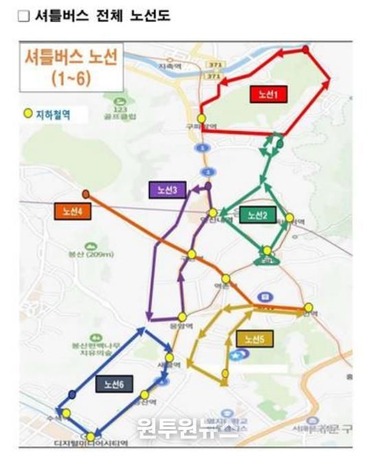 ▲서울경찰청기동대·우남아파트부터 선정중고등학교까지는 셔틀 4번, 4대 ▲충암고교앞·대주피오레아파트부터 응암초등학교까지는 셔틀 5번, 4대 ▲수색초등학교부터 DMC파인시티자이까지는 셔틀 6번, 4대로 총 6개 노선에 24대를 투입한다.