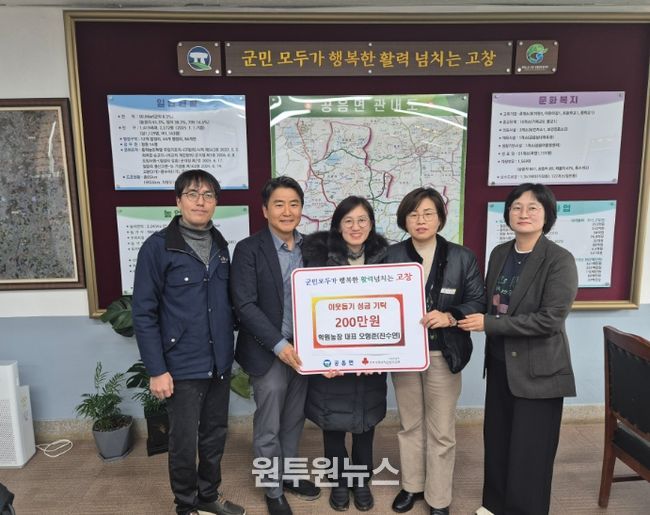 김애숙 공음면장은 “소중한 나눔으로 지역사회에 귀감이 되어 주시는 오형준 대표와 진수연님께 깊은 감사드린다”며 “소중한 성금이 도움이 꼭 필요한 이웃들에게 잘 전달될 수 있도록 최선을 다하겠다”고 밝혔다.