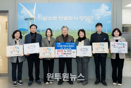 (원투원뉴스) 영광군은 1월 13일 지내들영농조합법인(대표 김순례)이 지역내 어려운 이웃을 위해 찰보리쌀과 홍미 각 500포씩, 총 1,000포(약 500만 원 상당)를 기탁했다고 밝혔다.