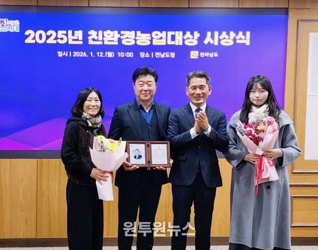 (원투원뉴스) 장성군의 이혁재 씨가 지난 12일 전남도청에서 열린 ‘2025년 전라남도 친환경농업 대상’ 시상식에서 재배·생산 분야 우수상을 수상했다.