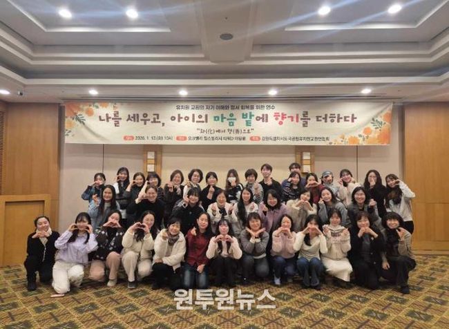 (원투원뉴스) 강원특별자치도국공립유치원교원연합회는 1월 13일 원주 오크밸리 힐스빌리지에서 유치원 교원의 정서 회복과 건강한 교육관계 형성 지원을 위하여 ‘나를 세우고, 아이의 마음 밭에 향기를 더하다’를 주제로 한 교원 연수를 운영했다.