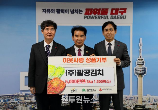 2008년 설립된 영농조합법인 팔공김치는 지역 대표 김치 제조업체로, 기부된 팔공산명품김치는 대구시가 품질을 인증한 ‘대구우수식품 제1호’ 인증을 받은 제품이다.